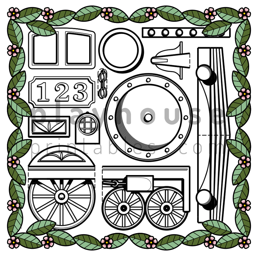 Chugga chugga choo choo!! All aboard the Playhouse Express! This easy to make train kit includes; wheels, driven wheels with couplers, boiler, bumpers, pilot, boiler bands, lamp and bell. Cut, stick, and steam out in style!